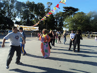 Mucha gente compartió el encuentro que tuvo varios animadores... el grupo de danzas folklóricas "Debajo del Puente", del Centro Cultural del Viaducto, quienes desplegaron sus pañuelos e invitaron a bailar chacareras, gatos, entre otras danzas más, al público allí presente...
